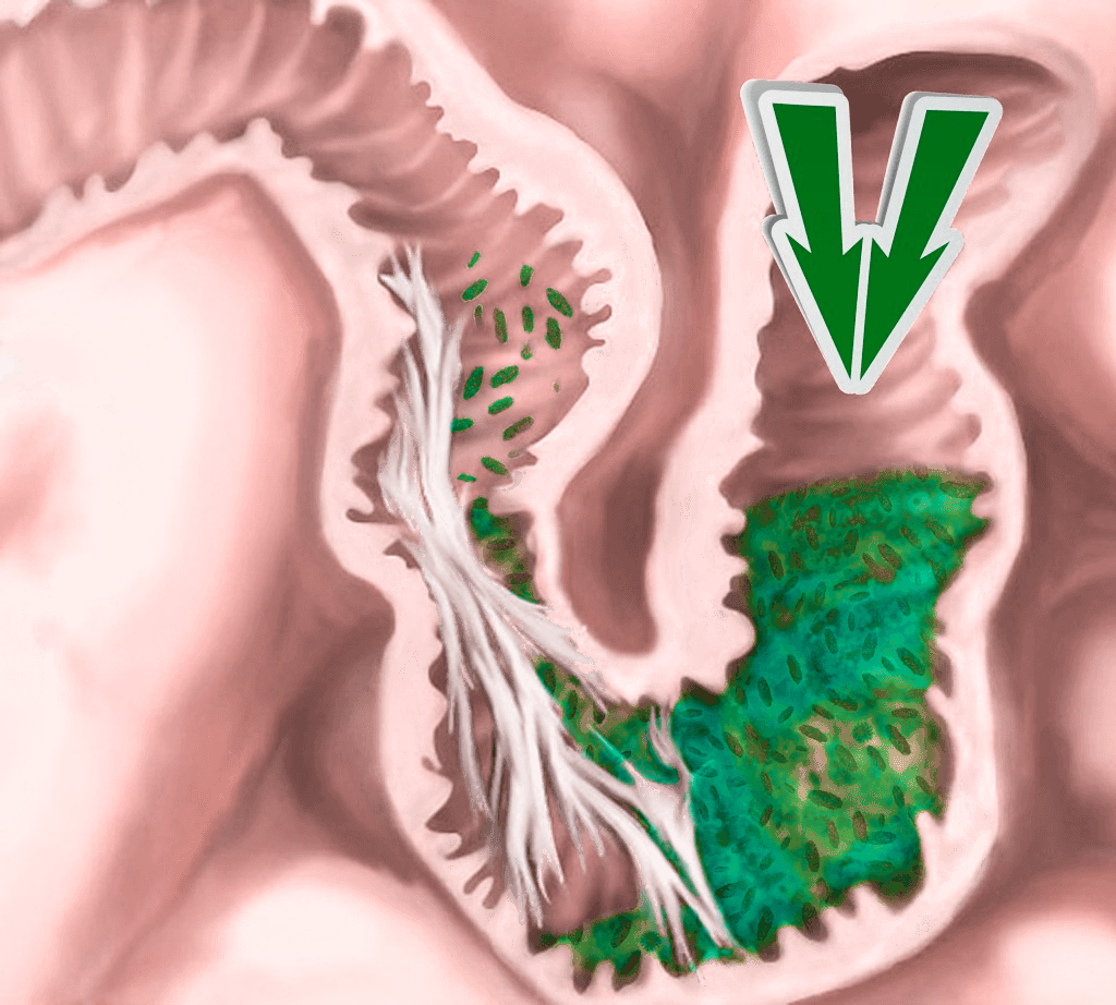 Wracając do analogii węża ogrodowego – zrosty mogą prowadzić do zwężenia światła jelita i hamować jego ruchliwość. Dochodzi wówczas do stagnacji treści jelitowej, która sprzyja namnażaniu bakterii i rozwojowi SIBO. W rzeczywistości zrosty jelitowe w wielu publikacjach podaje się jako jedną z anatomicznych przyczyn SIBO.
